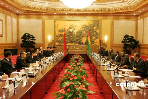 中国国家主席胡锦涛十一月一日在北京人民大会堂与来访的几内亚比绍总统维埃拉举行会谈。中新社发 毛建军 摄