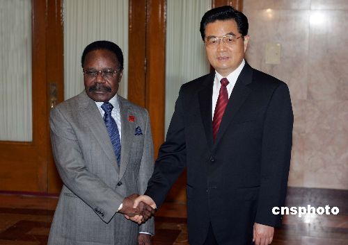中国国家主席胡锦涛十一月一日在北京人民大会堂会见前来出席中非合作论坛北京峰会的加蓬共和国总统邦戈。中新社发 毛建军 摄