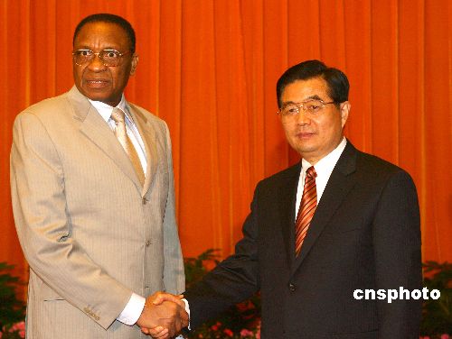 十一月六日,中国国家主席胡锦涛在北京人民大会堂会见尼日尔共和国总统坦贾。中新社发 廖文静 摄