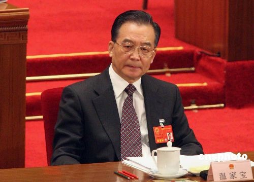 3月10日上午,十一届全国人大一次会议第三次全体会议在北京人民大会堂举行,温家宝出席与人大代表共同听取最高人民法院、最高人民检察院工作报告。中新社发 张宇 摄
