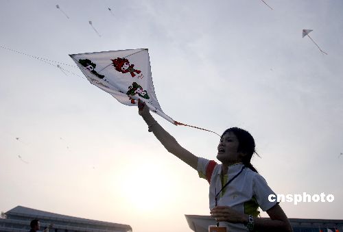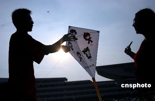 8月6日下午,在福建省厦门市会展中心草坪,两岸青年放飞福娃风筝共迎奥运活动在这里举行,来自两岸的共250名青年学生在这里放飞了奥运福娃风筝。中新社发 常海军 摄