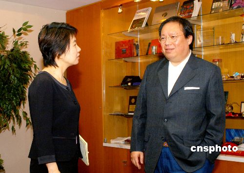香港特别行政区民政事务局局长何志平率港文化演艺界人士到纽约进行为期四天的考察访问,与纽约艺术院校、演出团体达成多项合作交流协议。图为何志平二十三日与香港驻纽约经贸办事处处长陈美嘉交流情况。中新社发 龚文谟 摄