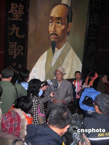 参加“第四届海峡两岸新闻媒体来湘联合采访”活动的记者,十一月下旬探访有“中华第一祠”之称的屈子祠,采访屈原文化研究学者、屈原纪念馆原馆长刘石林。由湖南省台办和中国新闻社湖南分社共同举办的“第四届海峡两岸新闻媒体来湘联合采访”活动,吸引了台湾TVBS电视台、东森电视台、中天电视台、“中央社”、中国时报和中央电视台、中国国际广播电台、中国台湾网等媒体参加。中新社发 白祖偕 摄