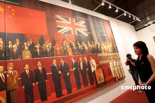 香港苏富比“世纪归程——香港回归十周年慈善拍卖”29日在香港丽嘉酒店举行,总成交价超过5千万港元。何鸿燊博士投得全场最高价之五件历史艺术作品包括两幅大型油画。中新社发 洪少葵 摄