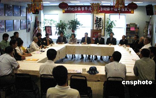 在香港回归祖国十周年之际,五十余位华盛顿侨学界代表在华盛顿举行座谈,畅叙各自有关香港回归的故事。中新社发 邱江波 摄