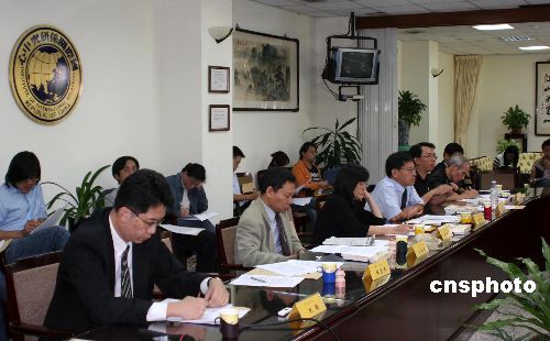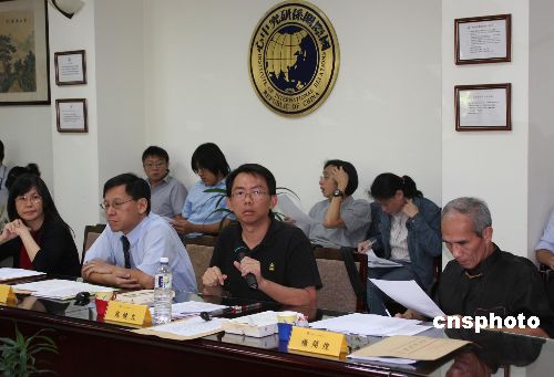 十月二十三日,来自多所台湾高校的大陆问题研究专家、学者,应邀出席在台北政治大学国际关系研究中心举办的中共“十七大”座谈会,从党政、人事、两岸关系、外交、军事、经济、社会和文化教育八个专题分析中共“十七大”,多给予积极正面的评价。中新社发 耿军 摄