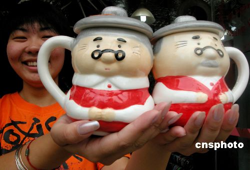 7月23日,一位顾客在山东省枣庄市的一家饰品店挑选了一对“老夫老妻情侣杯”,准备送给自己的父母。随着中国传统情人节“七夕”临近,山东省枣庄市许多商家适时推出爱意浓浓的情侣饰品,以迎合情侣们互赠礼物的需求。中新社发 吉 喆 摄