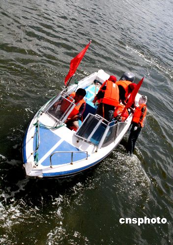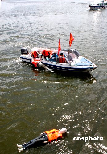 8月24日,在江苏如东国家中心渔港海上,南通市举行首次海洋渔业安全生产应急救援演练。如东有100多公里海岸线和广阔的滩涂,海涂养殖面积大且风险高,海洋作业人员多,为了保证渔民的生命财产安全检查,提高应对处置突发事件的能力,南通市海洋与渔业局、如东县人民政府及海洋、安监、海监渔政等单位参加了海上救援演练。中新社发 王必春 摄