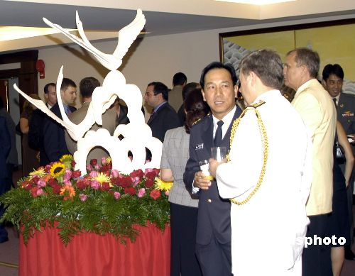 中国驻美国大使馆武官处在当地时间7月31日晚举行中国人民解放军建军七十九周年招待会,美国政界名流、在美中国侨领、美国军界名流、世界各国驻美使馆武官四百余人参加了今天的招待会。来宾汇聚畅谈,气氛甚为融洽。中新社发 邱江波 摄