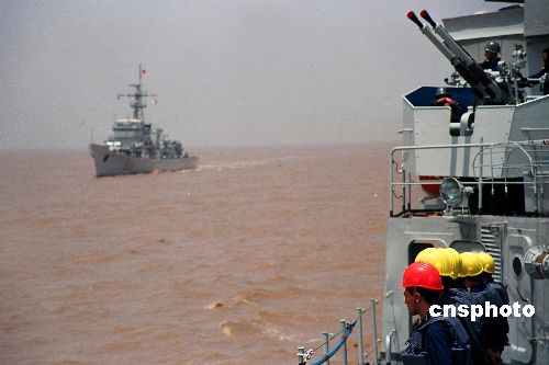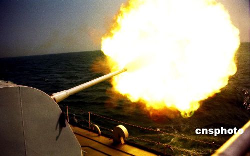 | 为提高官兵在复杂海况、恶劣气候等条件下的作战能力。8月初,东海舰队某舰艇编队在东海某海域排兵布阵。受台风影响后,海上风急浪大,甲板上气温高达40摄氏度,不少官兵的皮鞋都被烤焦,作训服干了又湿,湿了又潮,布满了一块块盐霜。官兵们充分发扬优良传统,积极克服晕船呕吐、炎热高温等困难,先后圆满完成了夜间火炮攻击,狭水道航行等重、难点科目演练。有力地提高了编队的快速反应能力,锤炼了官兵在复杂海况、恶劣气候条件下的作战能力。//中新社发 毛昭胜 摄