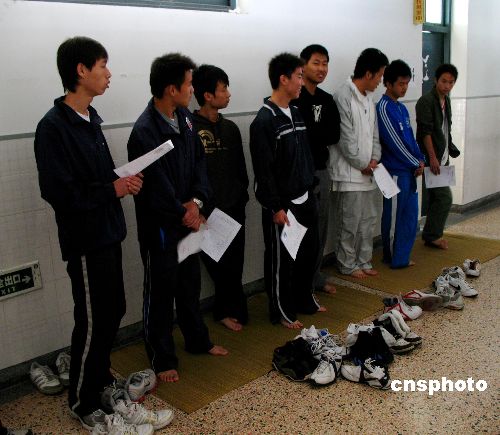 2007年南京军区空军招收飞行员初检11月6日起在浙江绍兴市(高级中学)举行,来自全市各地的应届高三学生纷纷参加了体检。在市区学校学生初检中,有三位学生初检合格。中新社发 李瑞昌 摄