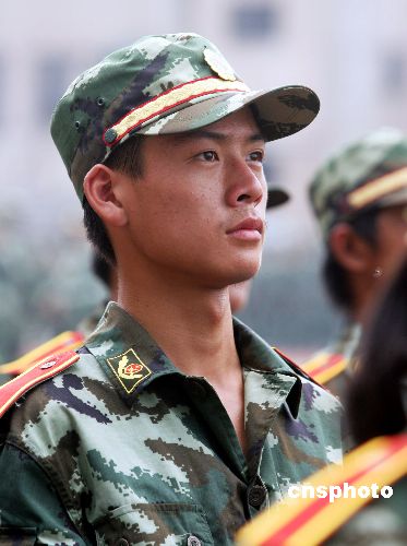 | 8月21日,淮北一中2006级入学的900多名高一新生开始了为期一周的军训活动。训练场上,教官们严抠细训,耐心讲解。课间休息时,教官们带着大家玩起了“老鹰捉小鸡”、“贴烧饼”、“步调一致”的趣味游戏,教唱军旅歌曲。晚上,教官们不顾一天的劳累,手把手地教学生叠被子、整理内务、讲解国防知识,时刻培养学生们动手自理能力和国防意识。教官们在军训中严格要求自己,时刻保持军人作风,坚持每天出早操和晚训练半小时制度,武警官兵的雷厉风行的作风赢得了军训学校师生的高度称赞。中新社发 李 博 杨成松 摄