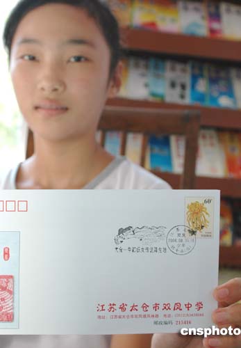 今天,太仓双凤中学少年邮局的同学向记者展示了一封特殊的首日封,封上刻制了“织女庙”临时邮戳一枚,邮戳中刻有“织女下凡”图和“太仓--牛郎织女降生地”字样。据悉,这是中国第一枚“织女”地名文字邮戳,并采用了宣传邮戳与邮政日戳结合的连体戳,具有较高的民间传说专题收藏价值。作者:姜振华