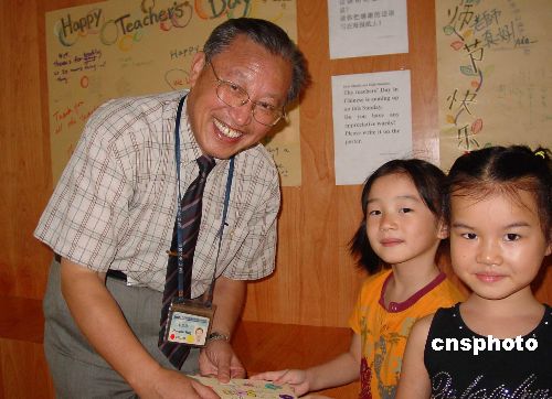 九月十日教师节前夕,上海台湾学生比例最高的“中芯学校”举行教师节庆祝活动。中新社发 李月娥 摄