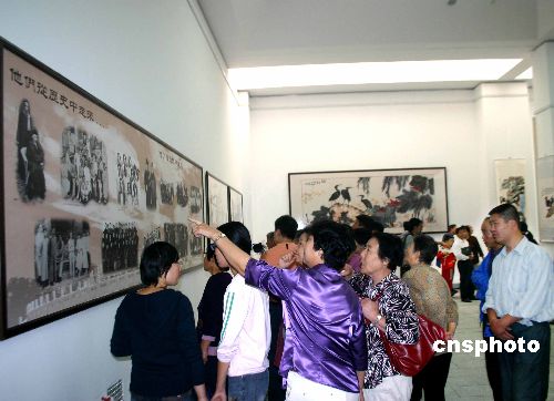 九月十六日,中国国画艺术大师李苦禅先生艺术馆在山东高唐举行了隆重的开馆仪式。李苦禅大师生前的好友、学生、家属以及文化界、书画界知名人士出席了开馆仪式。艺术馆共分为九个展厅(包括两个恒温、恒湿展厅)、五个画室、一个报告厅和一个藏画库,是目前中国国内一流的艺术馆。中新社发 薛红军 摄