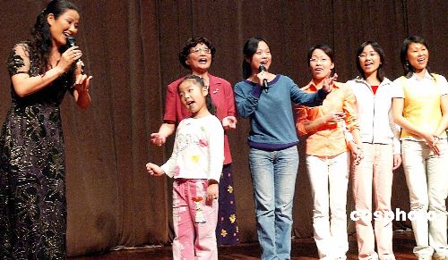 | 2006年9月16日, 越剧演员正与复旦大学的师生一起交流越剧唱段。当日,百年越剧进百年复旦-当代中国越剧名家名段演唱会在上海复旦大学举行。由国内数十位中国戏曲梅花奖得主组成百年越剧万里行演出团是首次进大学校园演出。越剧在1906年的一个春天发源于绍兴的乡间,如今她已成为中国的第二大剧种。为纪念越剧百年,中国越剧艺术节组委会主办,浙江省文化厅、绍兴市人民政府举行了百年越剧万里行演出。 越剧演员与复旦大学的师生一起交流越剧唱段。中新社发 袁云 摄