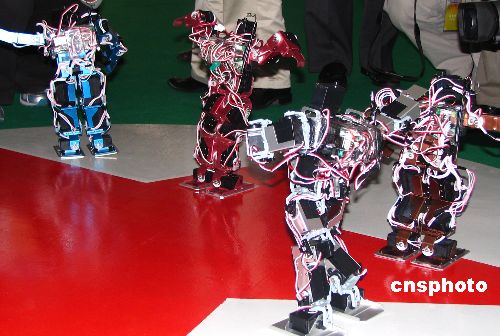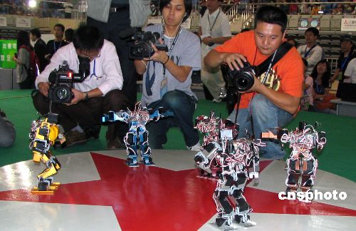 二零零六中国机器人大赛暨首届RoboCup中国公开赛十月五日在苏州独墅湖高等教育区拉开战幕。来自美国、德国、英国、新加坡等九个国家和地区的四百七十余支参赛队,将在为期四天的比赛中参加各个项目的角逐。中新社发 姚静 摄