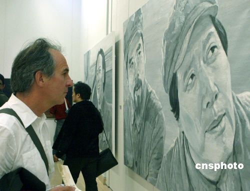 | 10月14日,由鲁迅美术学院和中国美术馆共同主办的《坚守与突破--鲁迅美术学院教师油画作品展》正式在北京中国美术馆举行,鲁迅美术学院的前身是毛泽东、周恩来等中国老一代领导人倡导建立的延安鲁迅艺术学院,抗战胜利后迁至东北,1958年更名为鲁迅美术学院,该院地处北方,受地域文化影响,作品形成了写实风格的主体,反映现实生活为创作原作的整体面貌。该院的艺术家通过艺术实践和积极探索,表达了对当代社会生活的深入体验,对人的生存、尊严、命运等的关注,折射出知识分子所应有的责任感和独立思考的精神。图为展出作品《历史剧--长征》吸引外国观赏者。中新社发 钱兴强 摄