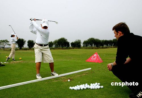 十月二十八日,“汇丰明日冠军训练营”上海站启动,为正在此间兴起的青少年学高尔夫热潮推波助澜。汇丰特邀世界著名的大卫·利百特高尔夫学院的教练,为中国高尔夫球协会推荐的三十二位青少年高尔夫球手及教练进行现场指导。许多家长表示,培养孩子学高尔夫,并不一定让孩子走职业之路,而是培养修养、增进体质。中新社发 潘索菲 摄