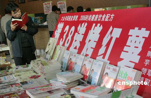 11月14日,市民在书店挂着“满38元送烤红薯”的条幅前选购图书。南京一家书店为吸引读者买书从11月13日起推出一种“买书送红薯”的促销活动。凡在该书店购书满38元者可获红薯一只。书香、薯香让不少市民闻香而来。中新社发 文宝 摄