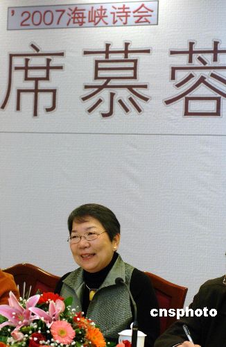 十二月二十二日,由福建省文学艺术界联合会、《台港文学选刊》杂志社、福建省文学艺术对外交流中心主办的2007海峡诗会“天和地谐,人和诗谐——席慕蓉海峡西岸行”在福州拉开序幕,并于当天在福建会堂举行了席慕蓉作品研讨会。图为席慕蓉参加研讨会。中新社发 王东明 摄