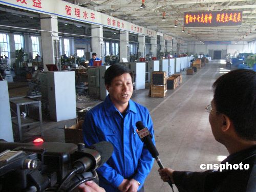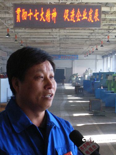 10月22日,齐齐哈尔建华公司党委书记在接受采访。当日,中国共产党第十七届中央委员会第一次全体会议胜利闭幕。国家老工业基地齐齐哈尔市的产业工人非常高兴,中国兵器工业集团公司齐齐哈尔建华公司党委书记谷云龙代表全体员工表示:坚决拥护十七大的各项决议,拥护新一届中央领导集体,紧密地团结在党中央周围,不断增强自主创新能力,为国家发展,社会和谐人民进步多做贡献。中新社发 王云龙 摄