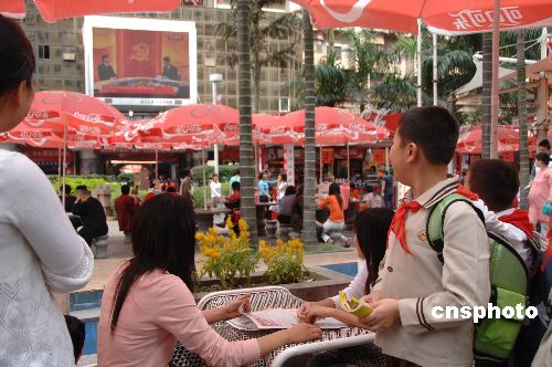 10月22日,路人驻足福州台江步行街,观看中央电视台现场直播的十七届中共中央政治局常委同中外记者见面实况。中新社发 郑祚声 摄