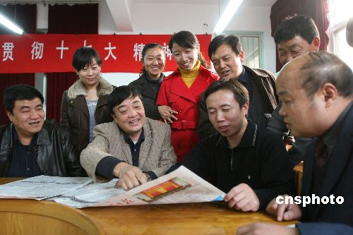 10月23日,河南省开封市文化艺术学校的党员干部正聚在一起学习贯彻“十七大”会议精神。中国共产党第十七次全国代表大会刚刚闭幕,河南省开封市各界党员干部和群众迅速掀起学习贯彻十七大精神的热潮,大家纷纷表示要以十七大精神为动力推动当前工作,坚持开拓进取、不断创新,谱写人民美好生活新篇章。中新社发 凯枫 摄