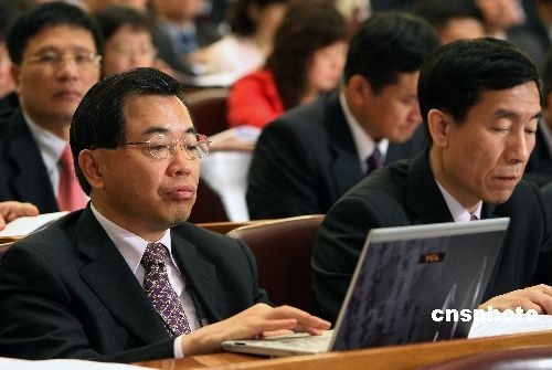 3月5日上午,十一届全国人大一次会议在北京人民大会堂开幕,一些代表自带笔记本电脑出席,实时收看大会网络视频直播。中新社发 任晨鸣 摄