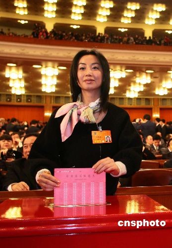 3月13日下午,全国政协十一届一次会议第四次全体会议在北京人民大会堂举行,选举政协第十一届全国委员会主席、副主席、秘书长和常务委员。新阶层女委员、黑龙江省工商联副主席、哈尔滨翔鹰集团股份有限公司董事长兼总经理刘迎霞首次在大会堂投票选举。中新社发 盛佳鹏 摄