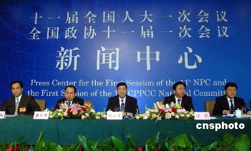 3月14日下午,国土资源部负责人在大会新闻中心就“国土资源保护与合理利用”接受中外记者的集体采访。中新社发 王东明 摄