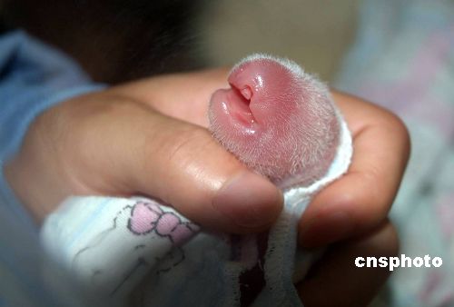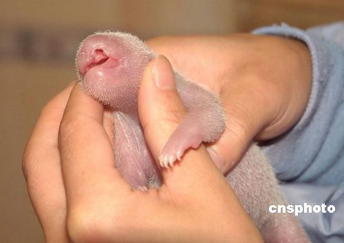 8月23日凌晨,卧龙中国保护大熊猫研究中心一只名叫“妃妃”大熊猫产下一对双胞胎宝宝,其中老大居然是兔唇,这在大熊猫繁育史上是首例。中新社发 李伟 摄