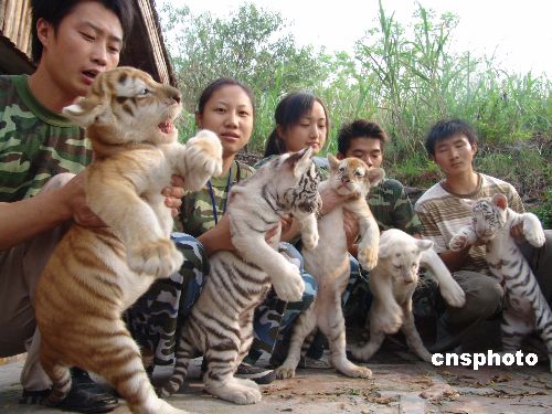 9月24日,小朋友在“小小动物乐园”与小老虎亲昵。重庆野生动物世界当日在园区举行了“小小动物乐园”开业仪式。该小动物乐园是西南地区唯一的为未成年人生态道德教育工作,而开设的野生动物保护科普园地。园里有小老虎、小黑熊、小猩猩等100多动物种类,让幼小动物与儿童一块嬉戏玩耍,愚教于乐,培养儿童良好的生态意识,保护生态,善待生命,热爱动物,热爱自然。中新社发 陈仕川 摄