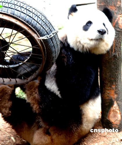 十月三日,一只活泼可爱的大熊猫在福州熊猫世界嬉戏玩耍,陪伴众多游人欢度“十一”黄金周假日。中新社发 刘可耕 摄