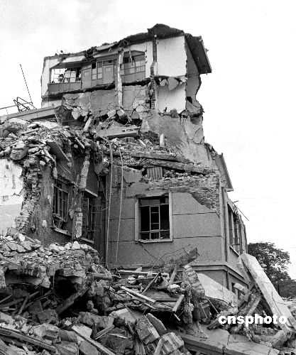 2006年7月28日是唐山地震30周年纪念日。1976年7月28日凌晨3时42分53秒,天空电闪雷鸣,一场突如其来的7.8级大地震,顷刻之间把百年唐山夷为平地。242769人丧生,164851人伤残,7200多个家庭消失,4202人成为孤儿。可计算的直接经济损失达30亿元以上,用于救灾和重建的投资难以计算。 唐山地震被称为“20世纪全球十大灾难”之一。图为唐山地震后的残垣断壁。中新社发 曹文 摄