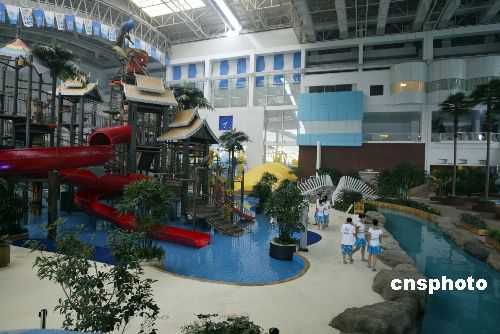 七月二十九日,北京盛夏又一休闲娱乐的好去处--温都水城正式开业。这是一个以生命之源“水”为主题的休闲水城,建有流行欢乐版的水上嘉年华,时尚版的温泉养生会馆,充满东方建筑文化特征的王府古建筑群。中新社发 任海霞 摄