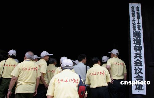 7月29日,“情系长征路——开国元勋子女重走长征路”抵达湖南通道侗族自治县,在“通道会议”原址参观“通道转兵”重大决策历史发生地。1934年中共中央率红一方面军血战湘江突破第四道封锁线的重重包围后,牺牲惨重,当年12月12日经过通道时,在恭城书院召开临时紧急会议,决定放弃北上湘西与红二、六军团会合的原定计划,改向敌人力量薄弱的贵州,避开了包围圈,挽救了红军。中新社发 田地 摄