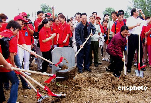 8月1日,黑龙江“知青馆”在黑河市古城爱辉镇举行开工奠基仪式。展馆规划占地40000万平方米,投资概算3070万,采取地方投入,地方自筹和知青捐助等多种形式,展馆预计2008年“知青”上山下乡40周年落成并对外展出。中新社发 邱齐龙 摄