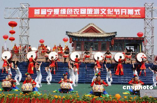 2006年8月6日,“首届宁夏绿色农垦旅游文化节”在宁夏4A级风景名胜区——沙湖旅游风景区开幕。据悉,此届旅游文化节为期10天,以“绿色农垦,生态家园”为主题。文化节期间,还将举办“宁夏农垦产业展示暨名优特农产品展览会”、宁夏第二届旅游葡萄节、宁夏乡村游发展研讨会等活动。中新社发 张波wj 摄