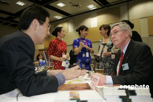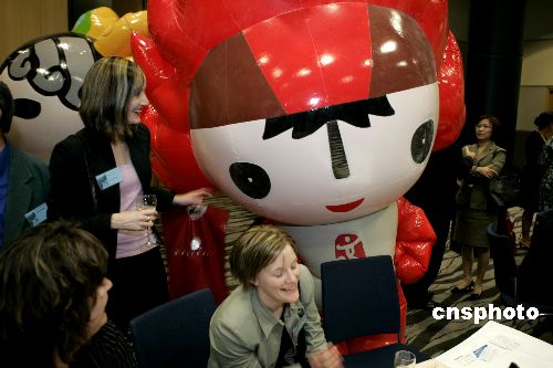 8月8日,中国国家旅游局局长邵琪伟率领的由中国十省市旅游局负责人、旅游企业负责人50余人组成的代表团到访新西兰,于当晚在奥克兰举行大型推介活动,向新西兰推广中国旅游。作为奥运吉祥物的五福娃也首次亮相新西兰。中新社发 崔 萌 摄