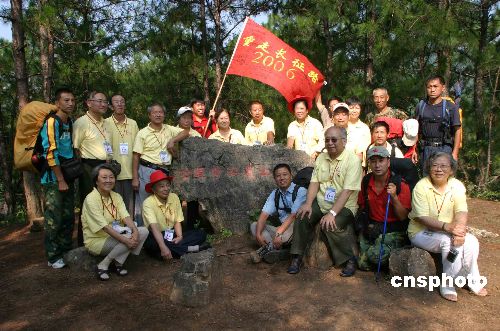 8月10,开国元勋子女在会理会议会址,与民间自发徒步重走长征路者合影。1935年5月3日至9日中国工农红军第一方面军主力在川滇交界的皎平渡巧渡金沙江后,进入四川省会理县,摆脱了数十万敌军的围追堵截,12日在会理一小树林中召开中央政治局扩大会议,维护了中央领导权,决定红军继续北上,史称“会理会议”。中新社发 田地 摄