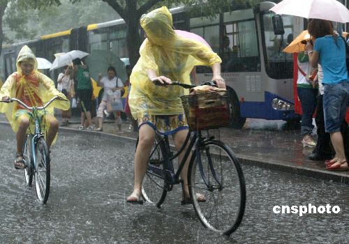 8月10日,已进入立秋节气的北京气温依然持续高温闷热,中午时分突降大雨,令闷热的京城带来点凉意。图为在繁华的西单街头市民、游客纷纷避雨。中新社发 钱兴强 摄