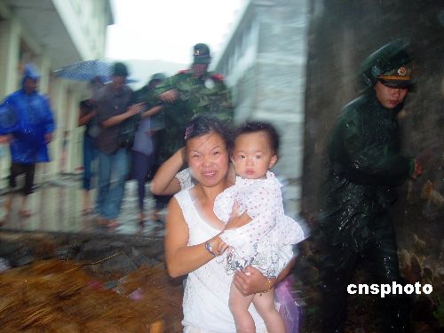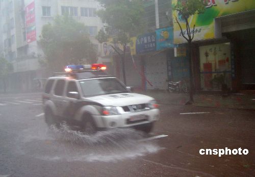 8月10日傍晚,今年第8号超强台风“桑美”在浙江温州登陆。为确保沿海群众生命财产安全,在台风登陆期间,驻温边防部队积极派出警车在重要路段、危险地带进行不间断地巡逻检查,及时清除路障,为群众排险解困,提供各类帮助。中新社发 吴水斌 摄