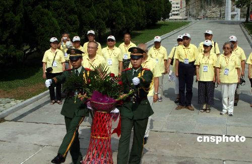 8月13日,重走长征路的开国元勋子女一行抵达四川省泸定县,向红军飞夺泸定桥纪念碑敬献花篮。1935年5月29日,中国工农红军在长征途中取得飞夺泸定桥的重大胜利。中新社发 田地 摄