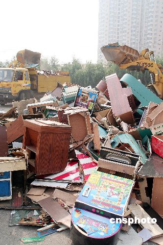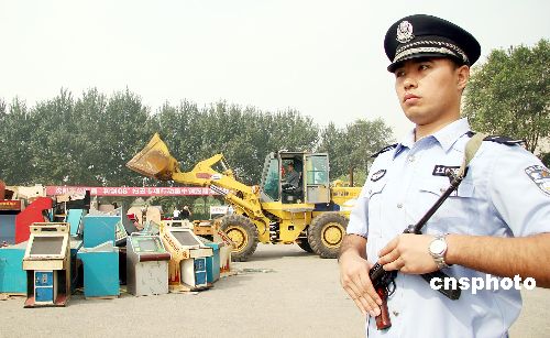 8月31日上午,沈阳市公安局在浑南原特警训练基地对“利剑06”扫丑专项行动开展以来收缴的235台赌博游戏机进行了集中公开销毁。这次销毁活动充分展示了公安机关在打击利用游戏机赌博违法犯罪活动中取得的丰硕战果,进一步表明了党和政府严厉查禁赌博等社会丑恶现象的坚强决心。中新社发 黄金昆 摄