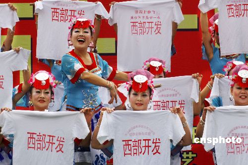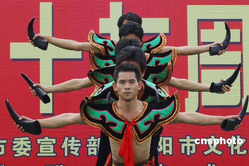 9月29日,贵阳市在该市人民广场举行迎国庆五十七周年大型广场文艺演出活动。该市各区职工代表、文艺工作者用歌声和舞蹈欢庆祖国的生日。中新社发 吴东俊 摄