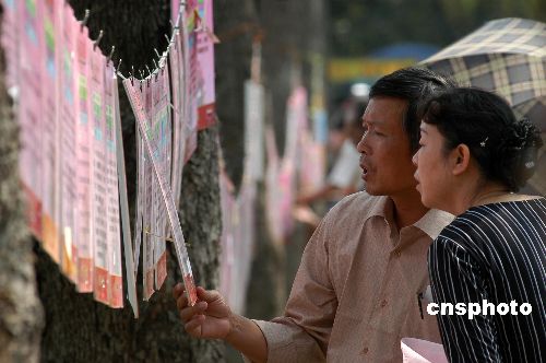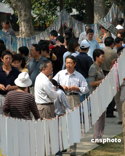 10月6日是中国传统节日中秋佳节,“2006国庆中秋万人相亲会”当日在南京玄武湖公园举行。单身人士和家人们一起在菊花烂漫的玄武湖公园寻找意中人。相亲会还针对高学历、高层次、高收入和中老年单身人士推出了“三高”和中老年相亲专场。中新社发 阿董 摄