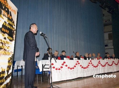 10月14日,在京的客家人和华侨组织在北京东直门文化馆举行《纪年红军长征胜利七十周年大会》。曾经参加过长征的中国人民解放军海军原副政委卢仁灿、原总参谋部第三部部长戴镜元、原北京军区空军司令员罗元发等老红军同志出席了大会。中新社发 孙兆鹏 摄