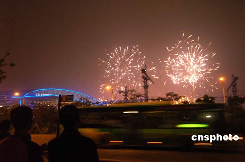 第100届中国出口商品交易会十月十五日开幕,当晚举行了盛大的焰火晚会,庆祝广交会百届盛典。中新社发 柯小军 摄