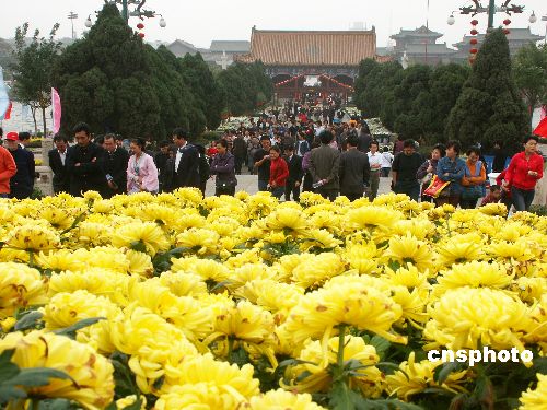 中国开封第24届菊花花会将在10月18日开幕,龙亭公园作为此次活动的主会场,布置10万盆菊花供游人欣赏。据悉,中国开封第24届菊花花会期间,开封将发行《金菊绽放迎奥运》个性化邮票。中新社发 凯枫 摄